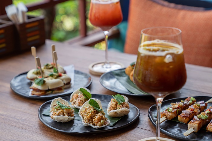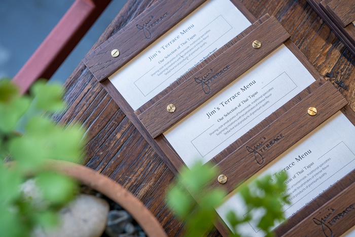 พร้อมลิ้มรสเมนูทาปาสไทยสุดพิเศษที่รังสรรค์ผ่านการตีความใหม่ในแบบฉบับของ จิมส์ เทอร์เรซ นำเอาวัตถุดิบเลิศรสจากท้องถิ่นไทยมาดีไซน์เป็นเมนูพิเศษภายใต้แนวคิดความเป็นไทยแบบสมัยใหม่เพื่อแขกคนพิเศษของ จิม ทอมป์สัน ไม่ว่าจะเป็น แซนวิชไส้อั่ว, หมูปิ้งหมาล่า, ลิ้นวัวย่างสไตล์อิสาน และอีกมากมาย พร้อมทานคู่กับเมนูเครื่องดื่ม ทั้งชา กาแฟ ค็อกเทล และม็อกเทล ทั้งยังมีเมนูไวน์ และของหวาน ไว้คอยให้บริการเพื่อเพิ่มความสดชื่นและเติมเต็มประสบการณ์สุดพิเศษ หลังเยี่ยมชม Jim Thompson House Museum, Museum about the Man และ Home Furnishing Exhibition และยังสามารถเพลิดเพลินกับการช้อปปิ้งสินค้าของ จิม ทอมป์สัน อีกมากมายได้ภายใน Jim Thompson Iconic Store