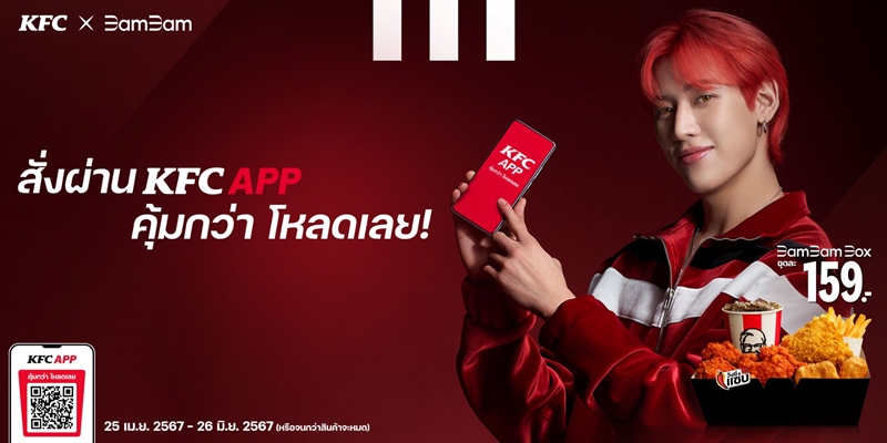 KFC x BamBam เปิดตัวเมนูเดอะบอกซ์สุดพิเศษ "BamBam Box" ที่แบมแบมร่วมออกแบบเมนูและแพคเกจจิ้งดีไซน์ด้วยตัวเอง แซ่บเกินต้านกับวิงซ์แซ่บของโปรด 4 ชิ้น ไก่ทอด 1 ชิ้น นักเก็ตส์ 2 ชิ้น เฟรนช์ฟรายส์ (ปกติ) 1 ชุด และ เป๊ปซี่ พร้อมกับดีไซน์กล่องเดอะบอกซ์ลิมิเต็ด ด้วยโทนสีดำพรีเมียมสุดคูล ตัดกับลายกราฟิกโลโก้สีแดงเท่ ๆ ของ BamBam Official ที่ไม่เหมือนที่ไหน ทั้งหมดนี้ในราคาเริ่มต้นเพียง 159.- อร่อยและคุ้มค่าสุด ๆ มาพร้อมดีลสุดเอ็กซ์คลูซีฟเฉพาะแฟน ๆ KFC เท่านั้น เพียงสั่งซื้อ BamBam Box หรือเดอะบอกซ์ชุดใดก็ได้ผ่าน KFC APP ได้รับฟรีทันที! โฟโต้การ์ดแบมแบม สุดลิมิเต็ด ทั้งหมด 4 แบบ ให้ชาวอากาเซ่ได้ไปสะสมกันฟิน ๆ ตั้งแต่วันที่ 25 เมษายน 2567 ถึง 26 มิถุนายน 2567 หรือจนกว่าสินค้าจะหมด ความพิเศษยังไม่หมดแค่นี้!! ถ้าใครอยากเจอแบมแบม ห้ามพลาด! เพียงสั่งซื้อ BamBam Box หรือเดอะบอกซ์ชุดใดก็ได้ผ่าน KFC APP ระหว่างวันที่ 25 เมษายน ถึง 26 พฤษภาคม 2567 รับสิทธิ์ลุ้นเป็น Lucky Fan 475 ท่าน และ Super Fan 25 ท่านร่วม Meet & Greet กับแบมแบม ที่งานแฟนมีตสุดเอ็กซ์คลูซีฟ KFC x BamBam Fanmeet at Kentucky Town ซึ่งจัดขึ้นที่สามย่านมิตรทาวน์ ในวันที่ 9 มิถุนายน 2567 นี้อีกด้วย พร้อมช้อปสินค้า KFC x BamBam สุดเอ็กซ์คลูซีฟที่มีขายเฉพาะในงานนี้เท่านั้น! (ติดตามรายละเอียดเพิ่มเติมได้ที่เพจ KFC Thailand)