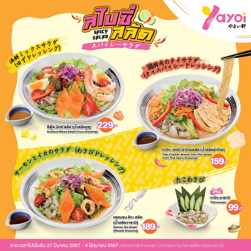 ยาโยอิ ส่ง 3 โปรฯ ใหม่ รับซัมเมอร์! คัตสึ ปาร์ตี้ - สไปซี่ สลัด - คูลลิ่ง ซัมเมอร์ พร้อมเสิร์ฟความอร่อยหลากหลายสไตล์ญี่ปุ่น ตอบทุกความชอบ ถึง 4 มิ.ย.นี้