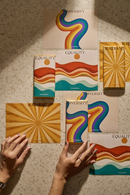 ? Mocha & Muffin (มอคค่า แอนด์ มัฟฟินส์) ร้านคาเฟ่และเบเกอรี่ ครีเอทเมนูขนม และของหวานต้อนรับ Pride month โดยในปีนี้ เชฟนำเสนอภายใต้คอนเซ็ปต์ ?I Radiate Pride? ยกทัพขนมสีรุ้ง Limited Edition มาให้เลือกอร่อย หรือซื้อเป็นของฝากกัน ได้แก่ พรีเมียมช็อกโกแลต บาร์ 2 รสชาติคือ Dark Chocolate เข้มข้น 80% และ White Chocolate ที่ประดับด้วยดอกไมโอโซติส หรือ Forget-me-not และกลีบกุหลาบอินเดียสีสดใส พร้อมแพคเกจสกรีนข้อความและลวดลาย 3 แบบ Radiate, Diversity และ Equality ที่เชิดชูทุกคนด้วยความเท่าเทียม ราคาชิ้นละ 300++บาท โดยทางร้านเลือกใช้ช็อกโกแลตชั้นเลิศจาก Cocoa Horizons ประเทศเบลเยี่ยม แหล่งผลิตและปลูกโก้โก้แบบยั่งยืน 100% ซึ่งเป็นการสนับสนุนชุมชนและสิ่งแวดล้อมอีกทางหนึ่งด้วย