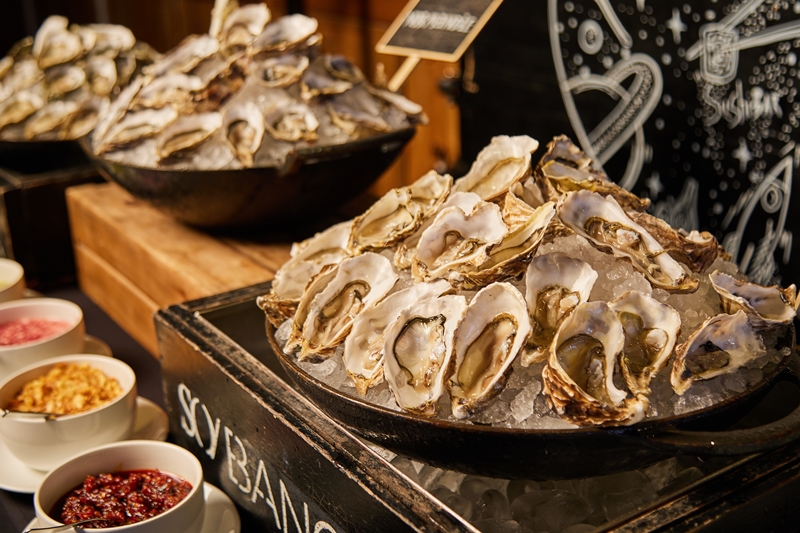 สำหรับตัวเลือกความอร่อยที่ทีมเชฟของ โซ แบงคอก ตั้งใจคัดสรรมาอย่างพิถีพิถัน เริ่มต้นที่ซีฟู้ดสด ๆ จากท้องทะเล ตั้งแต่หอยนางรม กุ้งล็อบสเตอร์ ปูอลาสก้า ปูม้า หอยแมลงภู่ นอกจากนี้ยังมีกุ้งแม่น้ำ และสเตชั่นปรุงอาหารสดใหม่ให้รับประทานแบบไม่อั้น ทั้ง ฟัวกราส์ เป็ดปักกิ่ง และสเต็กขาแกะสูตรเฉพาะของเชฟ