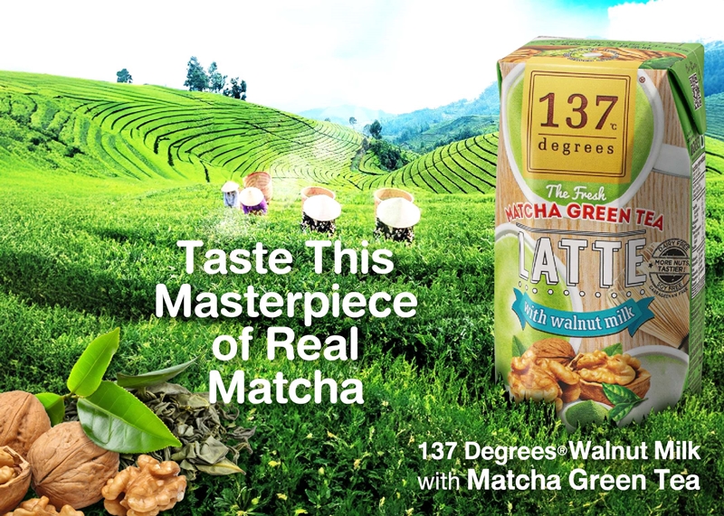 137 ดีกรี ส่งความอร่อยแบบพรีเมียมของ เดอะ พรีเมียม มัทฉะ กรีนที ลาเต้ นมวอลนัทที่พิถีพิถัน ผนวกกับความใส่ใจในขั้นตอนการผลิต ด้วยการควบคุมอุณหภูมิ ให้ผลิตภัณฑ์คงคุณค่าสารอาหารคับกล่อง ผสมผสานความอร่อยของนมและมัทฉะอย่างลงตัว