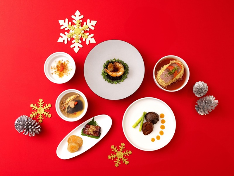 อาหารชุดพิเศษสำหรับเทศกาลคริสต์มาส 5 รายการมีให้บริการในค่ำคืนวันคริสต์มาสอีฟ (Christmas Eve) 24 ธันวาคม 2567 ตั้งแต่เวลา 18.00 น ถึง 23.00 น. และวันคริสต์มาส (Christmas Day) 25 ธันวาคม 2567 มื้อกลางวัน 12.00 น.ถึง 14.30 น. และมื้อค่ำตั้งแต่เวลา 18.00 น ถึง 23.00 น. ราคา 4,900++ บาท ต่อท่าน เพิ่มอรรถรสให้กับมื้ออาหารด้วยเครื่องดื่มจับคู่อาหาร ราคา 1,500++ บาท สำหรับเครื่องดื่ม 3 แก้ว หรือ 2,300++ บาท สำหรับเครื่องดื่ม 5 แก้ว