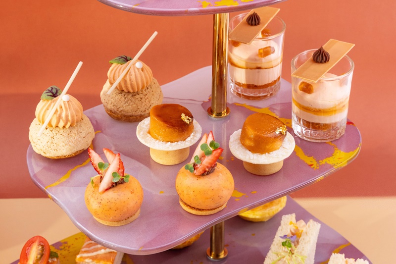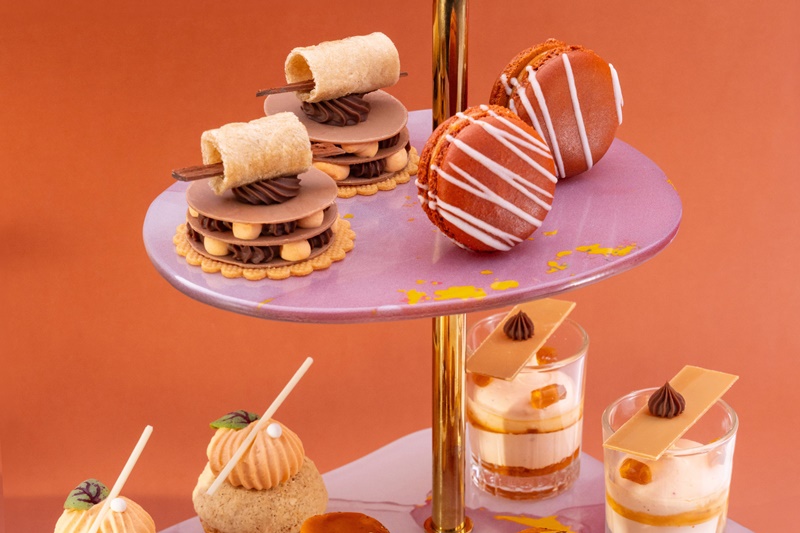 ส่วนขนมหวานก็ล้วนเป็นขนมที่มีส่วนผสมของชาไทยอย่างลงตัว อาทิ มาการองชาไทย (Thai Tea Macarons) ครีมบรูเล่ชาไทย (Thai Tea Crème Brûlée) เค้กทีรามิสุชาไทย (Thai Tea Tiramisu) ที่มีส่วนผสมหลักเป็นมาสคาโปนครีมชาไทย (Thai Tea Mascarpone Cream) นอกจากนั้นยังมีมูสเค้กชาไทยน้ำตาลทรายแดง (Thai Tea Brown Sugar Crisp Mousse Cake) ตัดรสหวานด้วยแยมสตรอว์เบอร์รี่ (Strawberry Compote) และชูครีมชาไทย (Thai Tea Choux) โรยหน้าด้วยคาเวียร์ที่ทำจากน้ำตาลทรายแดง (Brown Sugar Caviar)