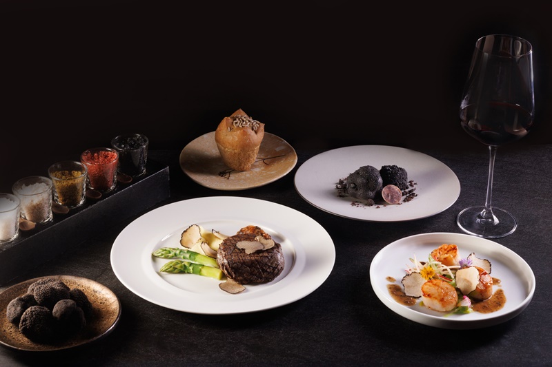 อาหารจานหลักที่โดดเด่นด้วย "ทรัฟเฟิลฤดูร้อน" ได้แก่ เนื้อสันในสต็อกยาร์ดย่างเสิร์ฟพร้อมแยมเห็ดชิตาเกะและทรัฟเฟิลดำ (Grilled Stockyard beef tenderloin with shitake mushroom jam and black truffle) ปลาตาเดียวเนื้อนุ่ม เสิร์ฟพร้อมกับหัวผักชีฝรั่งและแบล็คทรัฟเฟิลในซอสมิโซะเนยทรัฟเฟิล (Turbot served with black truffle celeriac, miso beurre blanc and black truffle sauce) นอกจากนี้ยังมีเมนูแนะนำอย่างพาสต้าไข่ทาลิโอลินี่กับเห็ดทรัฟเฟิลดำ เห็ดพอร์ชินี่และชีสพาร์เมซาน (Eggs tagliolini with black truffle, Porcini mushroom and parmesan cheese) รสชาติเข้มข้น พลาดไม่ได้กับขนมหวานปิดท้ายที่เป็นสวรรค์ของคนรักของหวานอย่าง "Cacao Truffle" ที่มีส่วนประกอบเป็นทรัฟเฟิลช็อกโกแลต กาแฟ ครีมทรัฟเฟิลช็อกโกแลต ครัมเบิลคุกกี้ เฮเซลนัทกรอบเคลือบน้ำตาล และวิปครีมกาแฟแชนทิลลี่