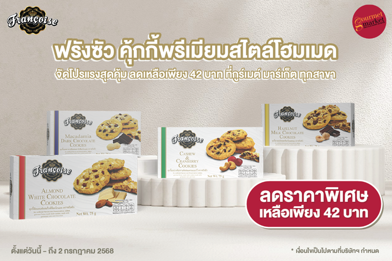 ฟรังซัว คุ้กกี้พรีเมียมสไตล์โฮมเมด จัดโปรแรงสุดคุ้ม ลดเหลือเพียง 42 บาท ที่กูร์เมต์ มาร์เก็ต ทุกสาขา