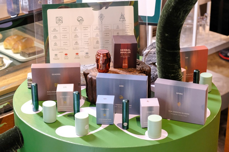 ในมุมพิเศษที่เปี่ยมด้วยกลิ่นอายแห่งการดูแลตัวเอง 'Botanical Brought to Life Corner' ถูกออกแบบให้เป็นพื้นที่แห่งการค้นพบตัวตนผ่านประสาทสัมผัส โดย Erb Aroma Inhaler Series คอลเลกชันเครื่องหอมไทยร่วมสมัยที่รังสรรค์ขึ้นจากแรงบันดาลใจของธาตุธรรมชาติทั้ง 4 ดิน น้ำ ลม ไฟ เพื่อปรับสมดุลจิตใจและเสริมพลังชีวิตอย่างลุ่มลึก ทุกกลิ่นถูกออกแบบอย่างประณีตให้เข้ากับอารมณ์ ความรู้สึกและจริตกลิ่นที่แตกต่าง โดยแบ่งออกเป็น 3 ซีรีส์ ได้แก่ Essential Oil Blend กลิ่น Spira (ธาตุลม), Quadra (ธาตุดิน), Orb (ธาตุน้ำ), Tri (ธาตุไฟ) ตามมาด้วย Aroma Massage Cream กลิ่น Citrus Zen (ธาตุลม), Zesty Cypress (ธาตุดิน), Calm Thyme (ธาตุน้ำ), Sacred Woods (ธาตุไฟ) และ Erb Equilibrium inhaler กลิ่น Premium scent ที่ไม่เพียงสะท้อนพลังของธรรมชาติ แต่ยังเชื้อเชิญให้ผู้มาเยือนได้เลือกกลิ่นที่ใช่สำหรับตัวเองได้อย่างอิสระและปล่อยใจให้ล่องลอยไปกับความผ่อนคลายได้ไม่มีที่สิ้นสุด