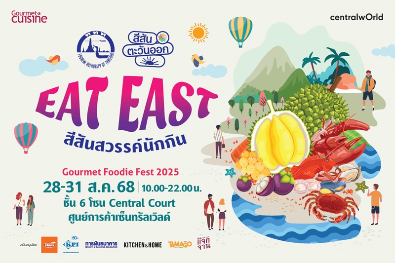 เตรียมพบที่สุดแห่งความอร่อยจากดินแดนตะวันออก ที่รวมทั้งรสชาติและเสน่ห์วัฒนธรรมการกินไว้ในงานเดียว! นิตยสาร Gourmet & Cuisine ร่วมกับ การท่องเที่ยวแห่งประเทศไทย (ททท.) ภูมิภาคตะวันออก จัดงาน "Gourmet Foodie Fest 2025 : Eat East-สีสันสวรรค์นักกิน" เทศกาลอาหารที่รวบรวมเอกลักษณ์แห่งรสชาติและวัฒนธรรมการกินของภาคตะวันออก ยกทัพกว่า 25 ร้านเด็ด จากภาคตะวันออก มาเสิร์ฟใจกลางกรุงเทพฯ ให้เหล่าฟู้ดดี้ได้ลิ้มลองความอร่อยแบบต้นตำรับ ครบเครื่องทั้งอาหารทะเลสดใหม่ระดับพรีเมียม อาหารพื้นถิ่นหากินยาก เครื่องดื่มสูตรพิเศษ และของหวานไอเดียสร้างสรรค์ พร้อมกิจกรรมพิเศษจากดาราและอินฟลูเอนเซอร์สายกินชื่อดัง ที่จะมาเติมสีสัน แชร์เคล็ดลับ และสร้างบรรยากาศสนุก อร่อย มีเรื่องเล่า วันที่ 28-31 สิงหาคม 2568 เวลา 10.00-22.00 น. ณ โซน Central Court ชั้น 6 ศูนย์การค้าเซ็นทรัลเวิลด์