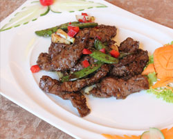 "เนื้อนกกระจอกเทศผัดพริกไทยดำ" โรงแรมเดอะ แกรนด์โฟร์วิงส์ คอนเวนชั่น